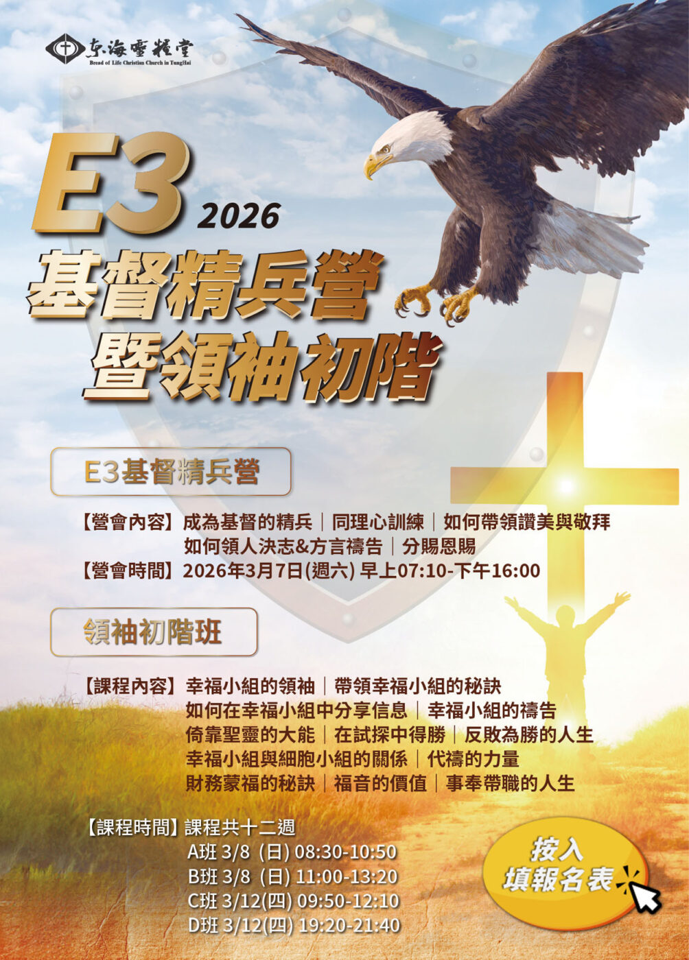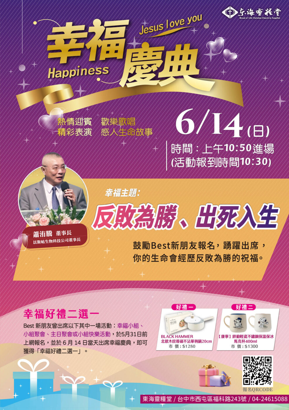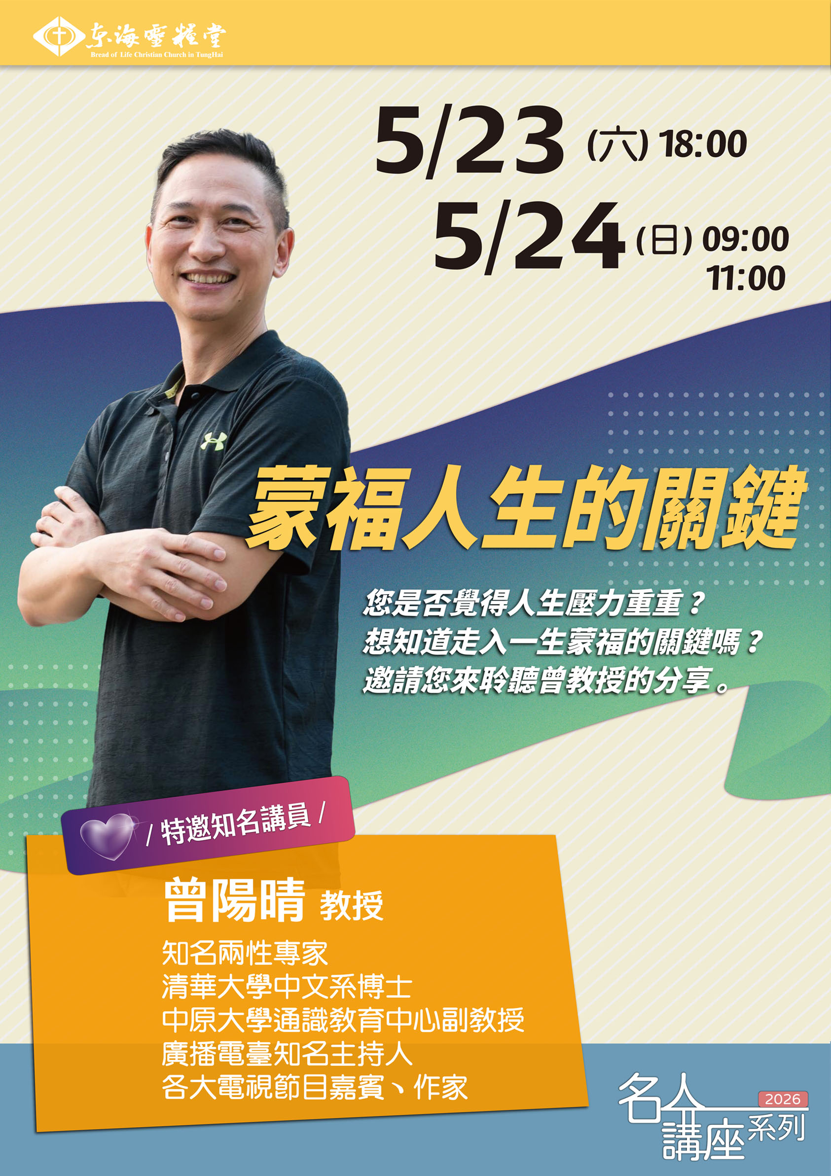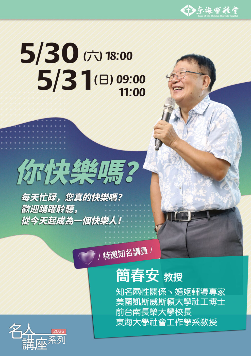 當你來到東海靈糧堂, 祝福你, 常常被鼓舞、情緒得釋放、生命被更新, 找到人生的意義。